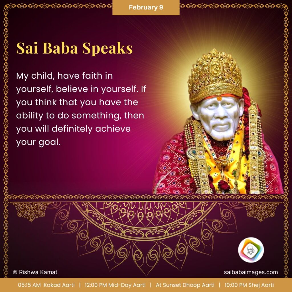 Ask Sai Baba - Sai Baba Answers - "My Child, have faith in yourself, believe in yourself. If you think that you ahve the ability to do something, then you will definitely achieve your goal".